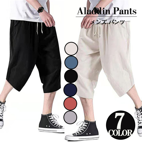 【キーワード】メール便 送料無料 綿麻パンツ メンズ サルエルパンツ ワイド リネン 薄手 快適 カジュアル ゆったり 涼しい 冷感 薄手 イージーパンツ メンズ アラジンパンツ ウェストゴム アンクルパンツ クロップドパンツ メンズファッション