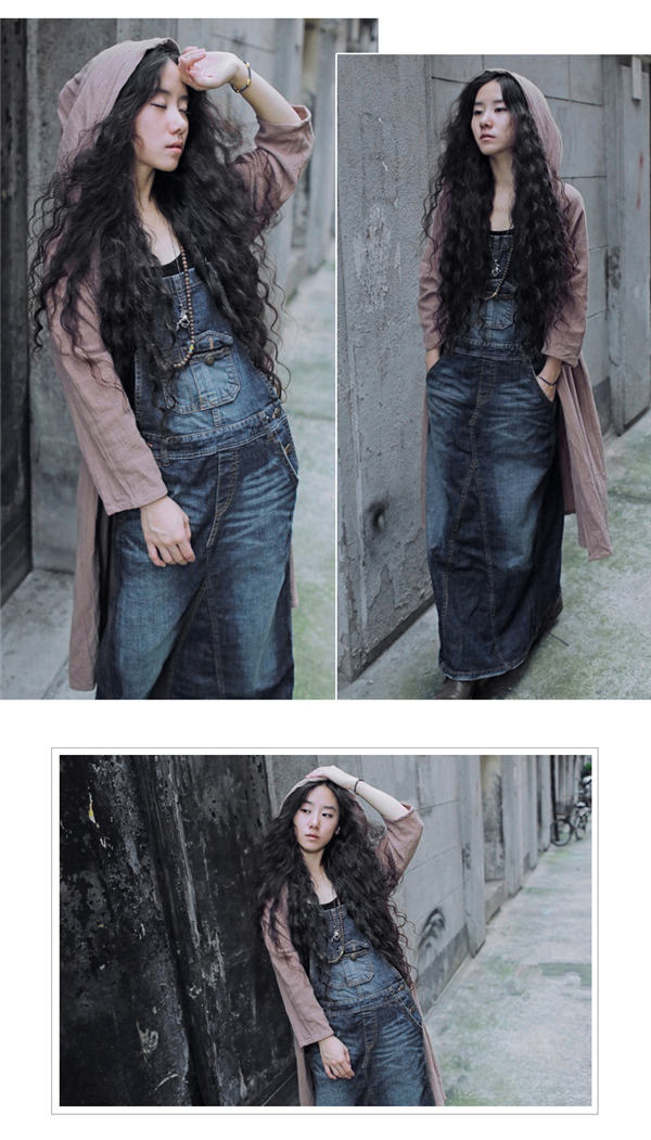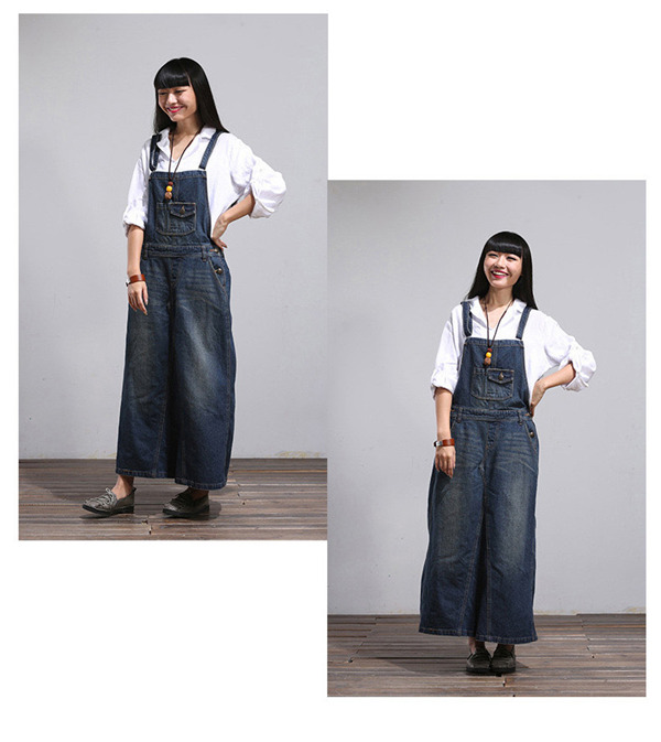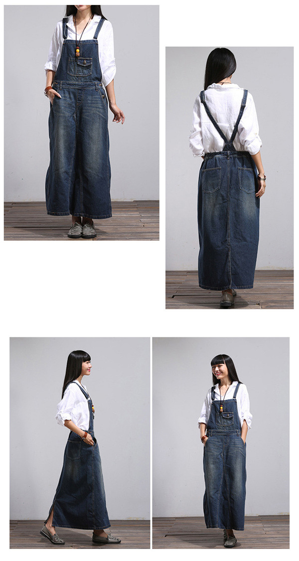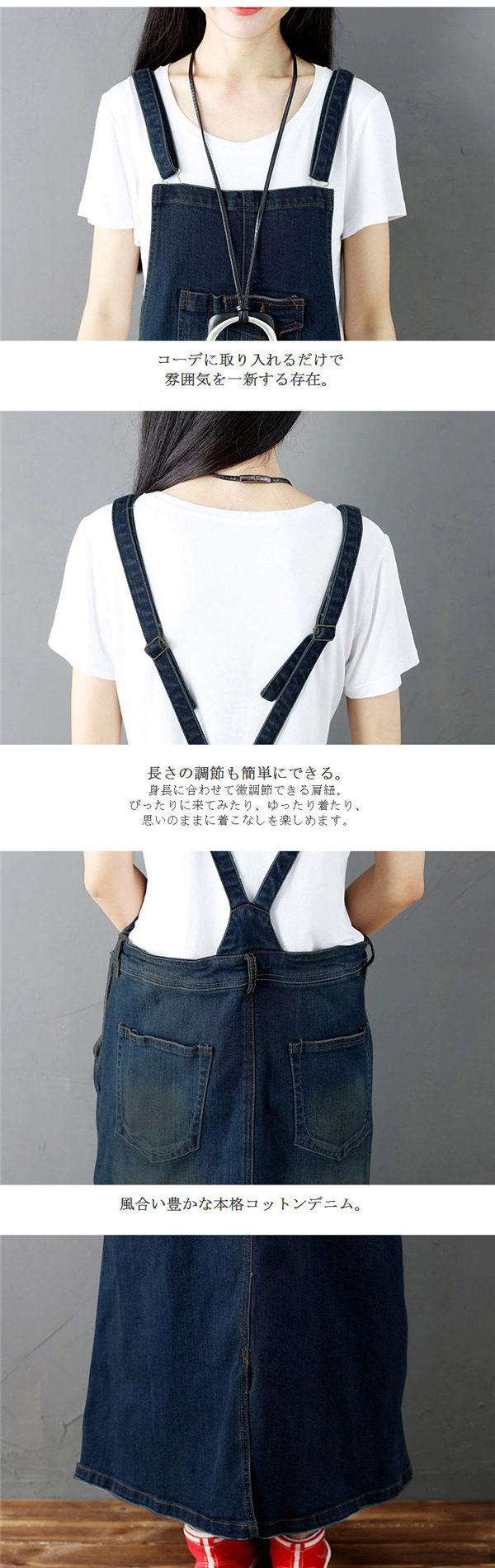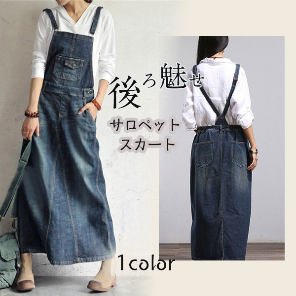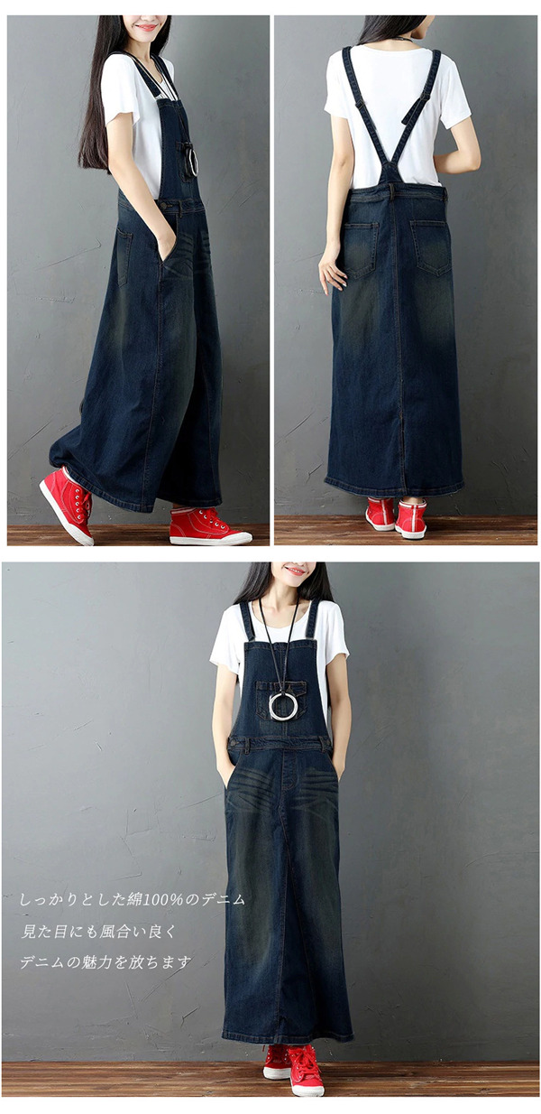 デニム サロペット スカート ワンピース レディース オールインワン ジャンパースカート 春秋 40代 ロング丈 無地 体型カバー ゆったり