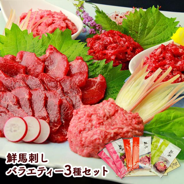母の日 2026 馬刺し 鮮馬刺しバラエティー3種セット 馬肉 馬刺 桜うまトロ 赤身 スライス ユッケ 個食 詰め合わせ お取り寄せ 内祝い お礼 お祝い 食品 グルメ ギフト 贈り物 お取り寄せグルメ 冷凍 手軽 晩酌 おつまみ 高級 送料無料 SEFB003