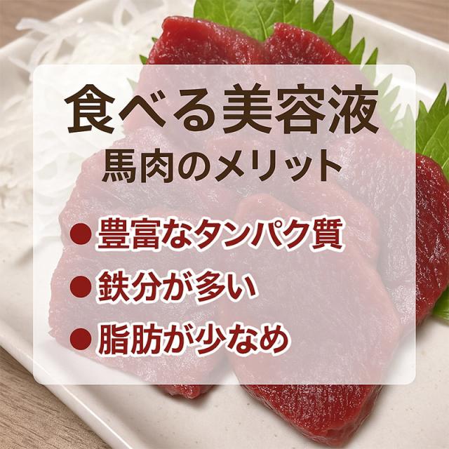 【食べる美容液】馬肉は高タンパク&低カロリーで非常にヘルシーなお肉です。ビタミン、鉄分も豊富で健康や美容を意識している方にオススメです!