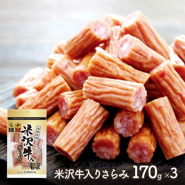 【メール便】サラミ 米沢牛入り さらみ 170g 3個 セット 国産 おつまみ 肉加工品 日持ち 酒の肴 酒のつまみ お取り寄せ 詰め合わせ おやつ 送料無料 YS0002