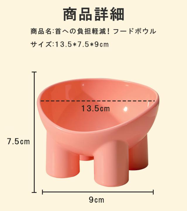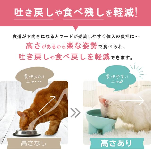 吐き戻しや食べ残しを軽減! 猫・犬用フードボウル 食道が下向きになるとフードが逆流しやすく体入の負担に… 高さがあるから楽な姿勢で食べられ、 吐き戻しや食べ戻しを軽減できます。 台座は広幅の4脚のデザインで 食べてる間も動かず倒れにくい。 安定感と扱いやすさのバランスが取れたちょうどよいデザイン。 シンプルでオシャレなデザイン どんな部屋にも馴染む飽きのこないデザイン。 用途気分で使い分けも◎ ※モニター環境により多少色合いが異なりますので、予めご了承くださいませ。 |