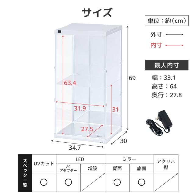【 LED 背面 底面ミラー 】 フィギュアケース uvカット コレクションケース 積み重ね 棚 アクリル クリア ディスプレイ 飾る 収納 ボックス 人形ケース ショーケース 展示ケース 卓上