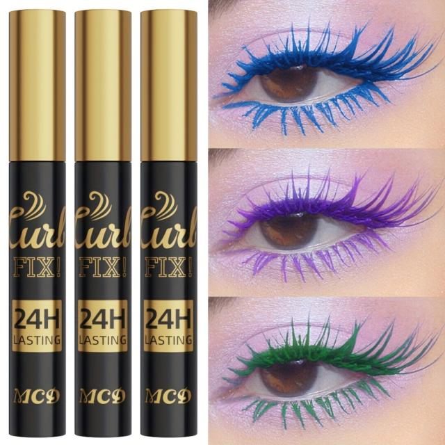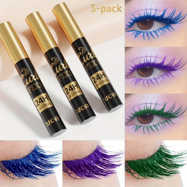 3本パック カラフル ウォータープルーフ マスカラ 24時間持続 まつ毛カール エクステンション - ブルー、パープル、グリーン - すべての肌タイプに適しています