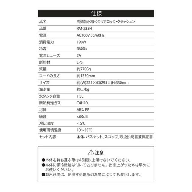 高速製氷機 クリアロック・クラッシュ 最短約6分製氷 家庭用 自動製氷機 アイスメーカー ROOMMATE RM-235H