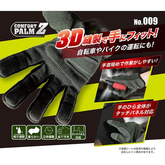 富士手袋 作業用手袋 天牛コンフォートパームZ | 3D縫製 手首短め タッチパネル対応 作業用手袋 人工皮革 グリップ力 通気性 自転車 バイク 運転 メンズ レディース