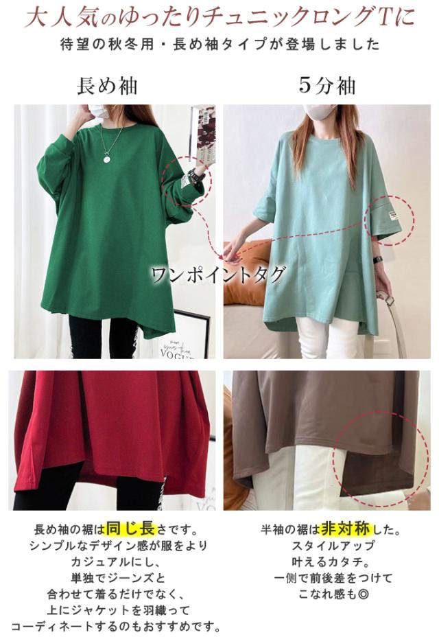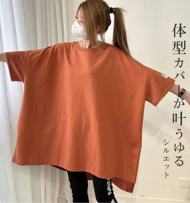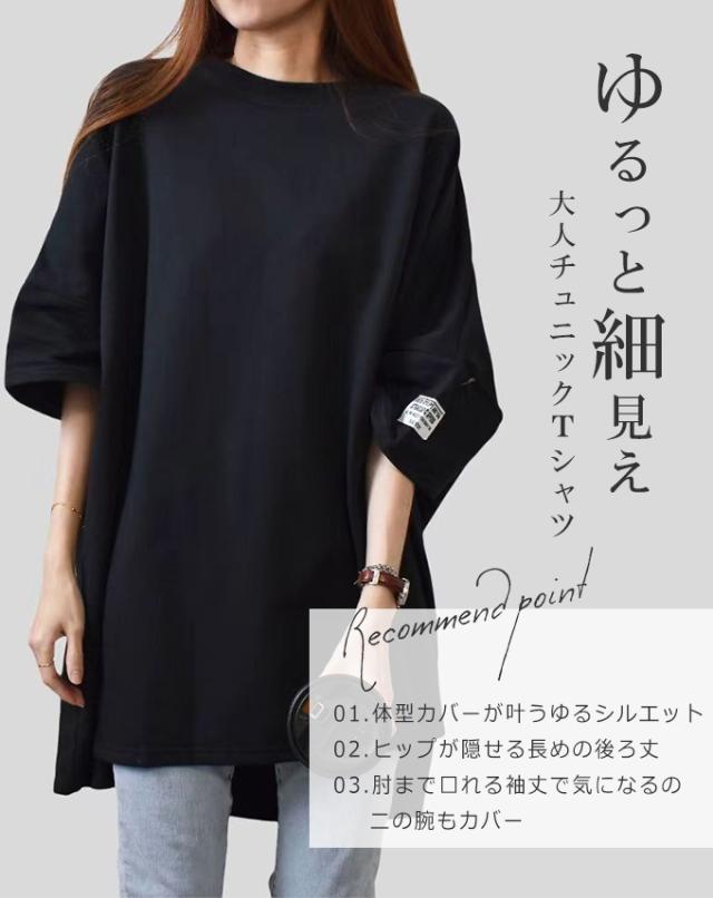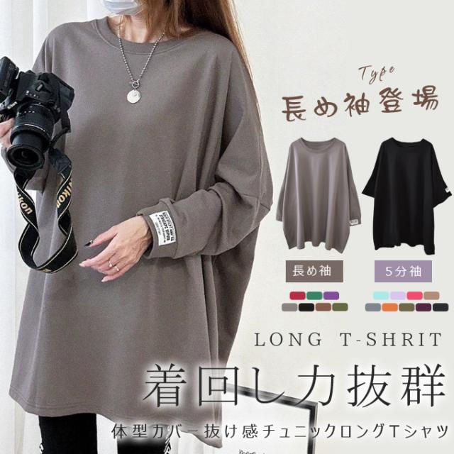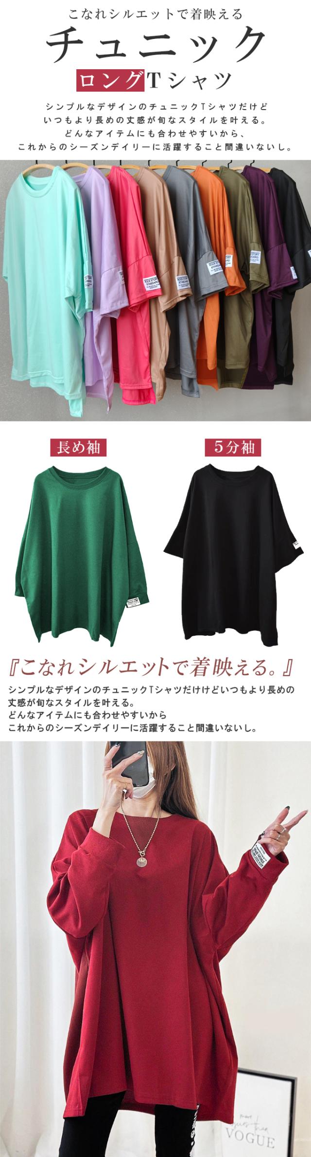 レディースファッション 長袖を追加しました、15%OFFクーポン配布中、1343円チュニックTシャツ ロングTシャツ 新作 ロゴ シンプル体型カバー可愛い 韓国風 無地 肌触りいい レディース 半袖Tシャツ トップス カットソー カジュアル ゆったり 二の腕カバー 楽ちん 着回し