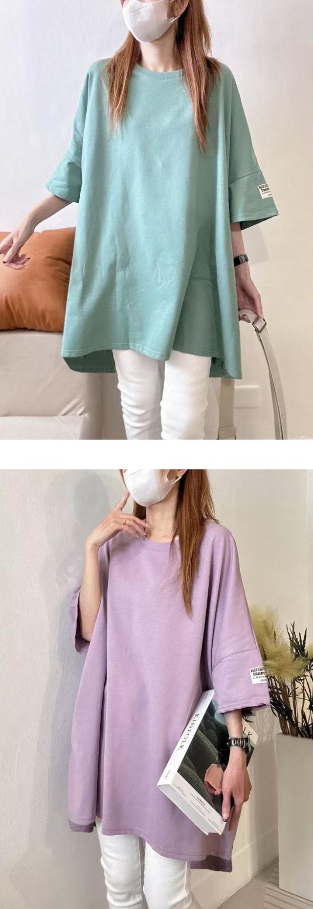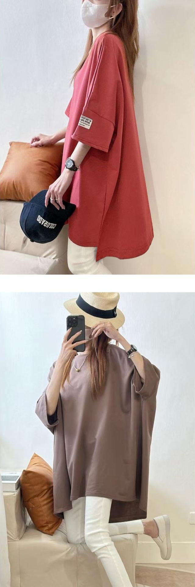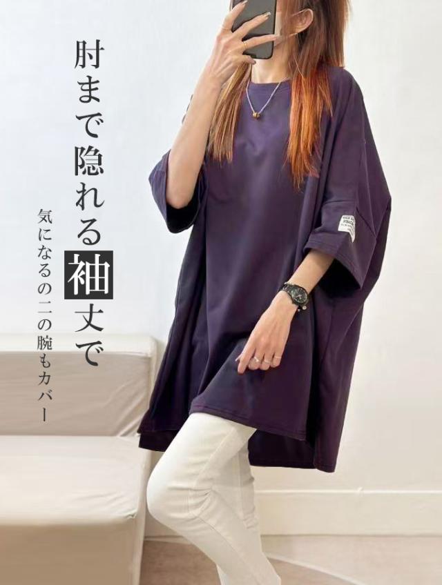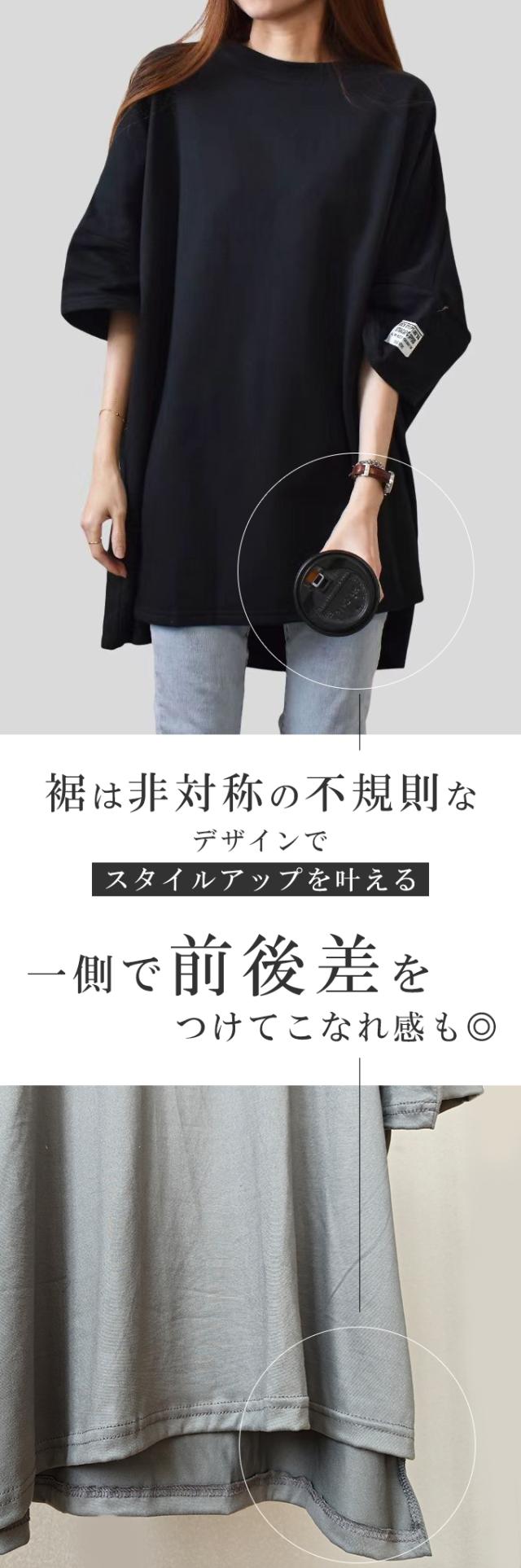 レディースファッション 長袖を追加しました、15%OFFクーポン配布中、1343円チュニックTシャツ ロングTシャツ 新作 ロゴ シンプル体型カバー可愛い 韓国風 無地 肌触りいい レディース 半袖Tシャツ トップス カットソー カジュアル ゆったり 二の腕カバー 楽ちん 着回し