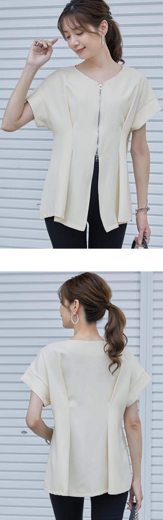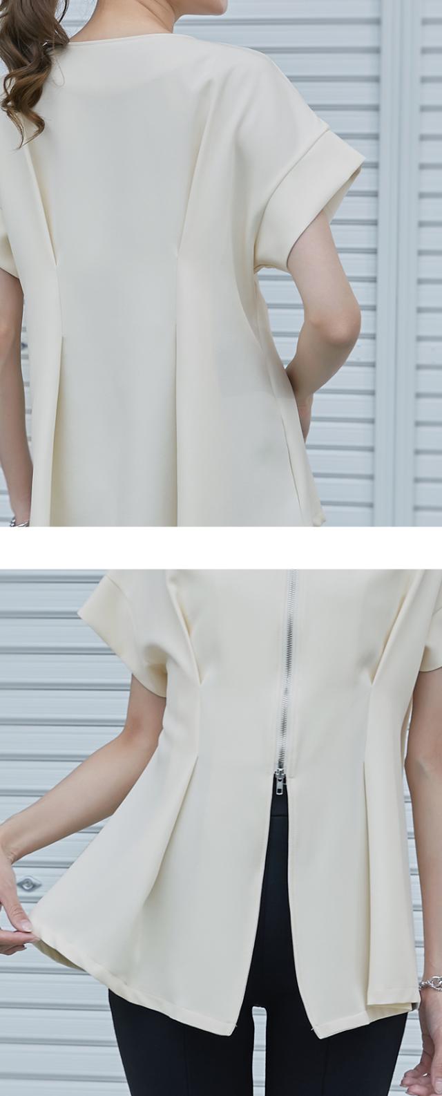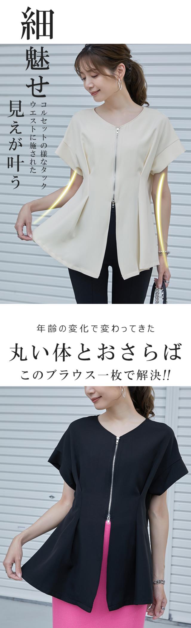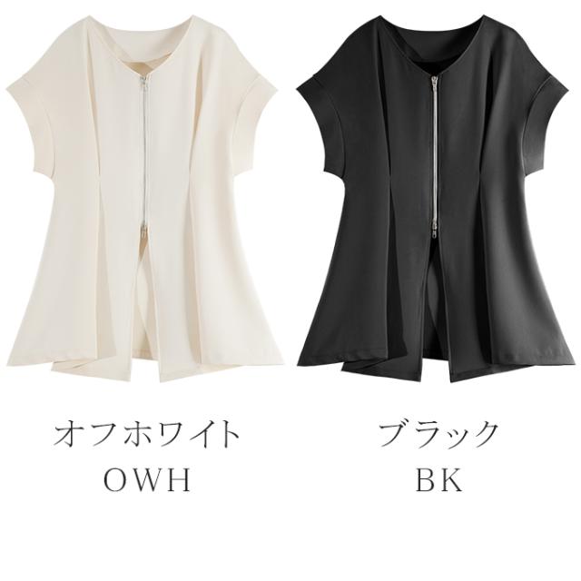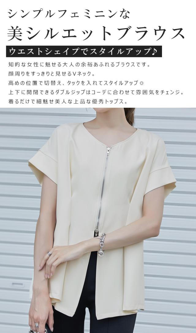 半額キャンペーン中、1790円シャツ ブラウス 細魅せ 着やせ ファスナー ダブルジップ ウエストタック 女の子 短袖 通勤 通学 日常 おしゃれ トップス 春 夏 vネック オフィス 無地 プルオーバー カジュアル おしゃれ きれいめ 二の腕カバー 楽ちん 着回し 20代 30代 40代 50代