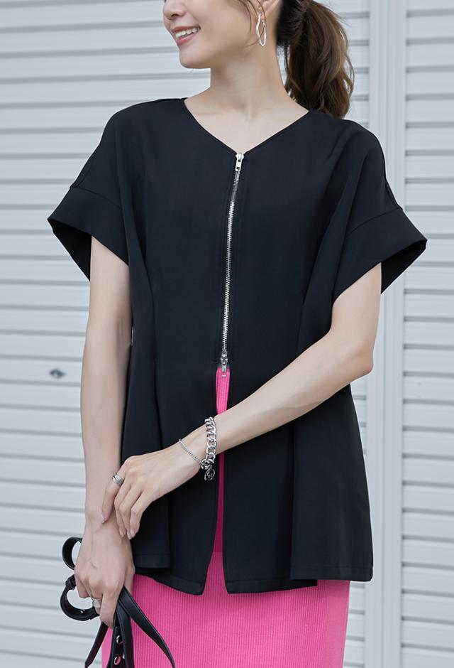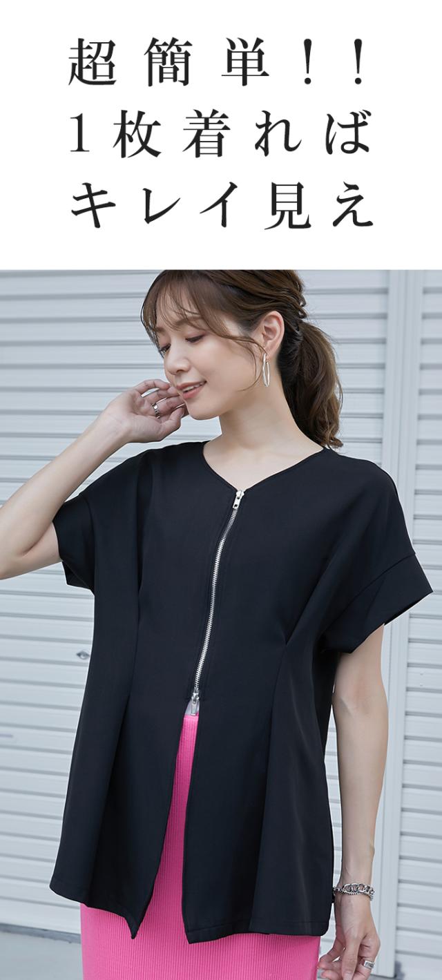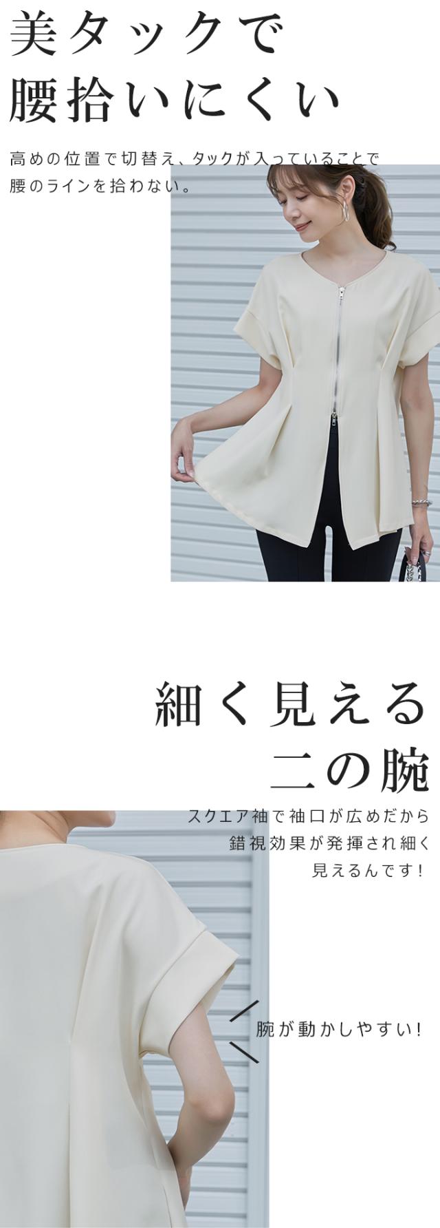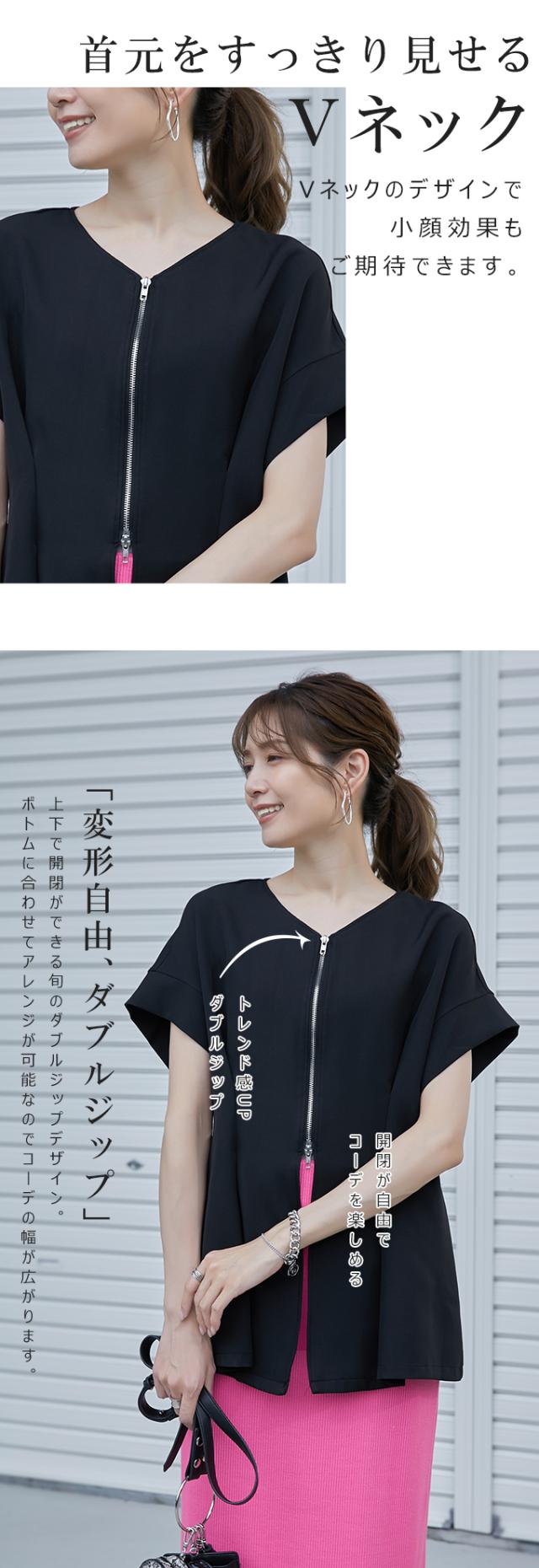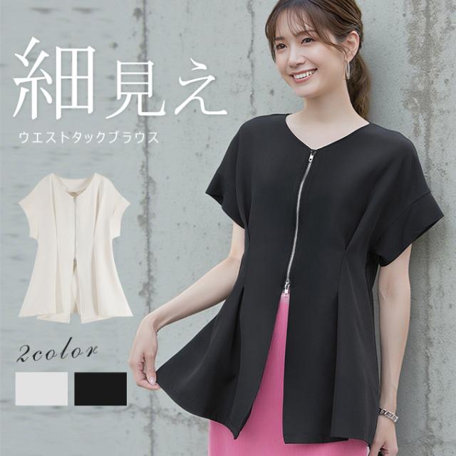 半額キャンペーン中、1790円シャツ ブラウス 細魅せ 着やせ ファスナー ダブルジップ ウエストタック 女の子 短袖 通勤 通学 日常 おしゃれ トップス 春 夏 vネック オフィス 無地 プルオーバー カジュアル おしゃれ きれいめ 二の腕カバー 楽ちん 着回し 20代 30代 40代 50代