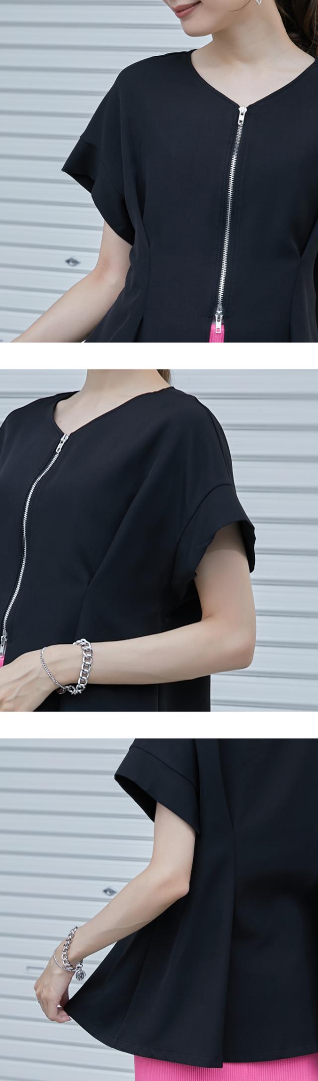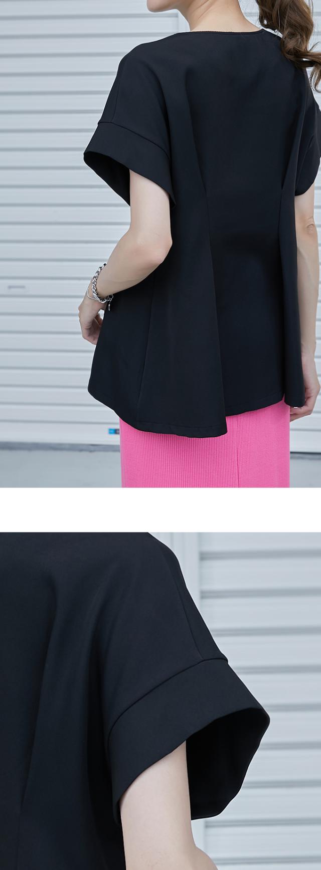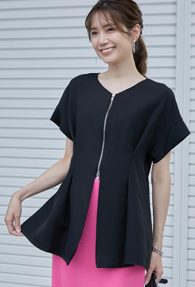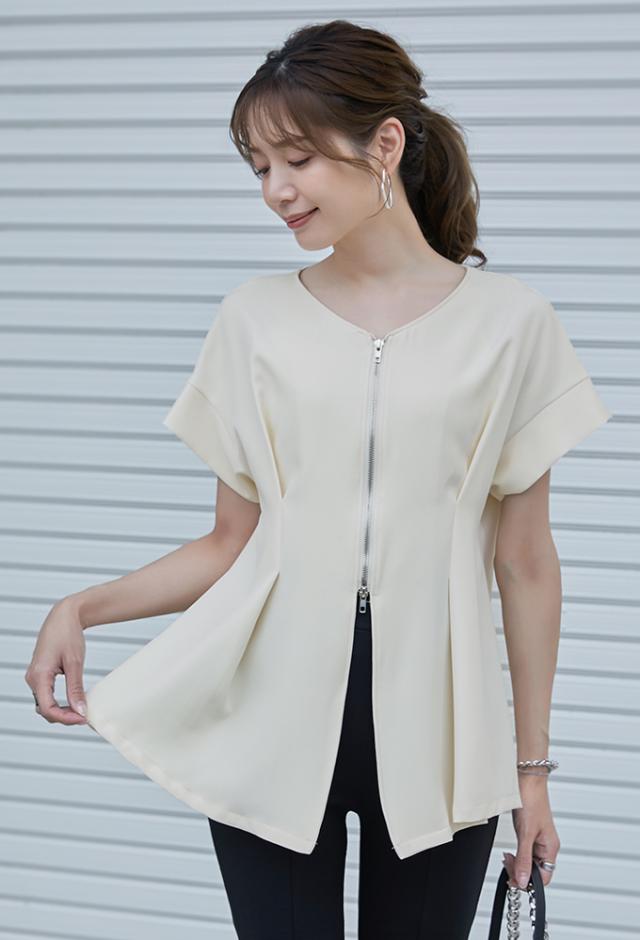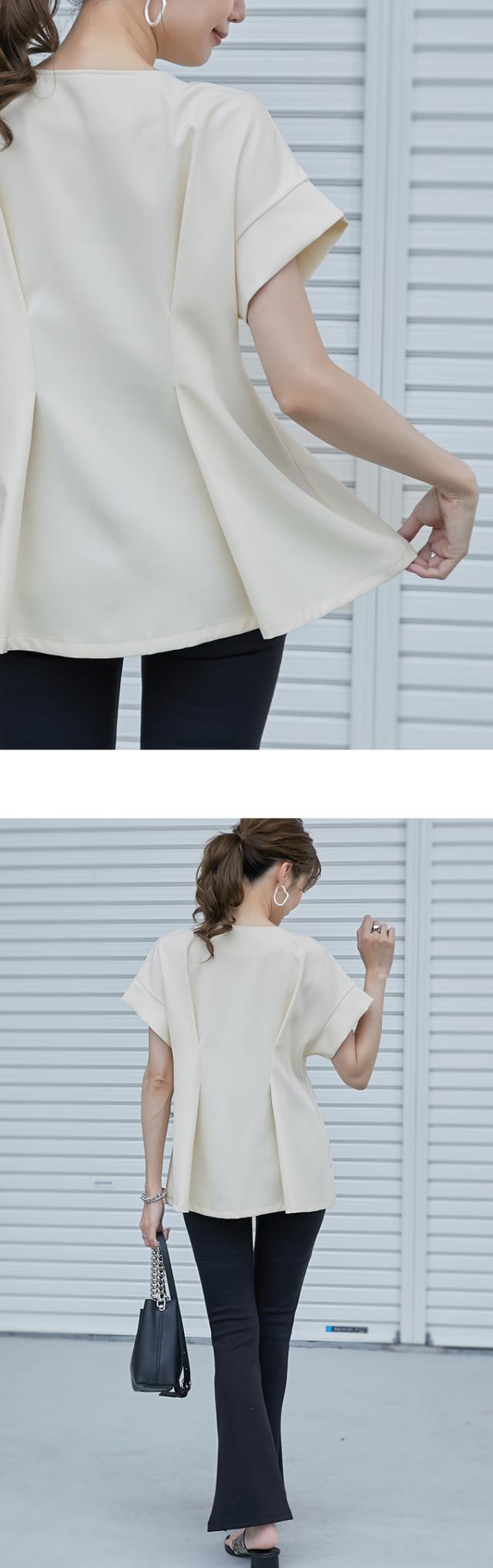 半額キャンペーン中、1790円シャツ ブラウス 細魅せ 着やせ ファスナー ダブルジップ ウエストタック 女の子 短袖 通勤 通学 日常 おしゃれ トップス 春 夏 vネック オフィス 無地 プルオーバー カジュアル おしゃれ きれいめ 二の腕カバー 楽ちん 着回し 20代 30代 40代 50代