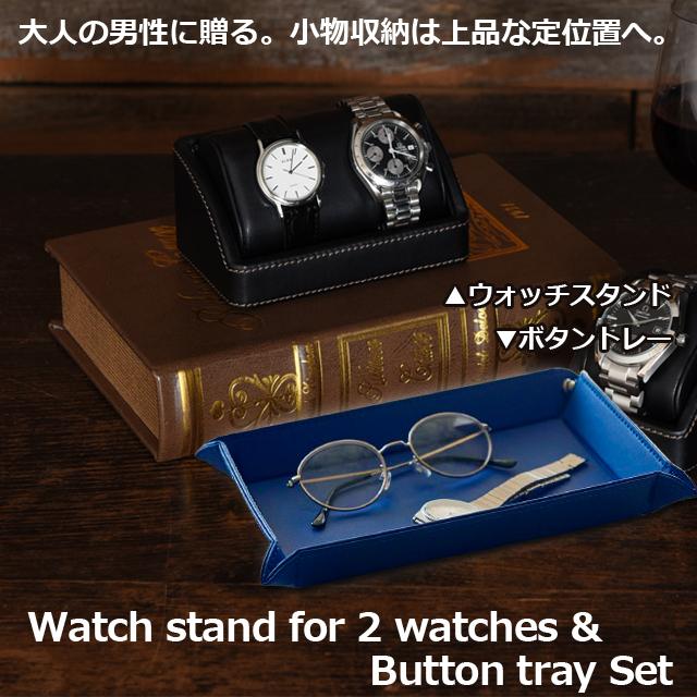 ウォッチスタンド(2本用)&ボタントレーセット 腕時計収納 スマホ入れ アクセサリー入れ 小物収納 メンズ 誕生日