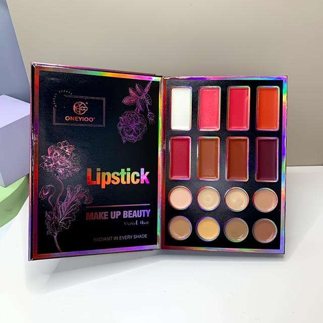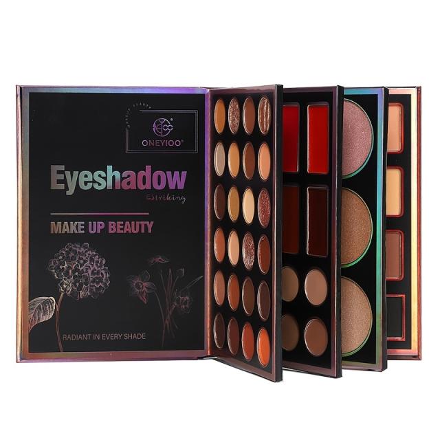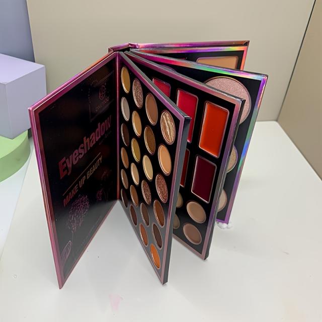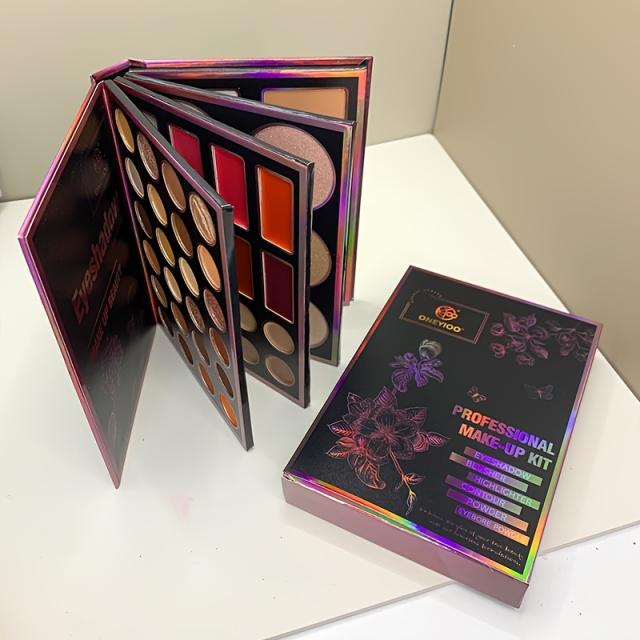 新作55色ブックメイクアップパレット 4ページデザイン付き、スタイリッシュでギフトに最適 ? マットアイシャドウ24色 + リップティント8色 + コンシーラー8色 + ハイライター6色 + ブローニングブローナーザー3色が一つセット ? 誕生日プントにぴったり