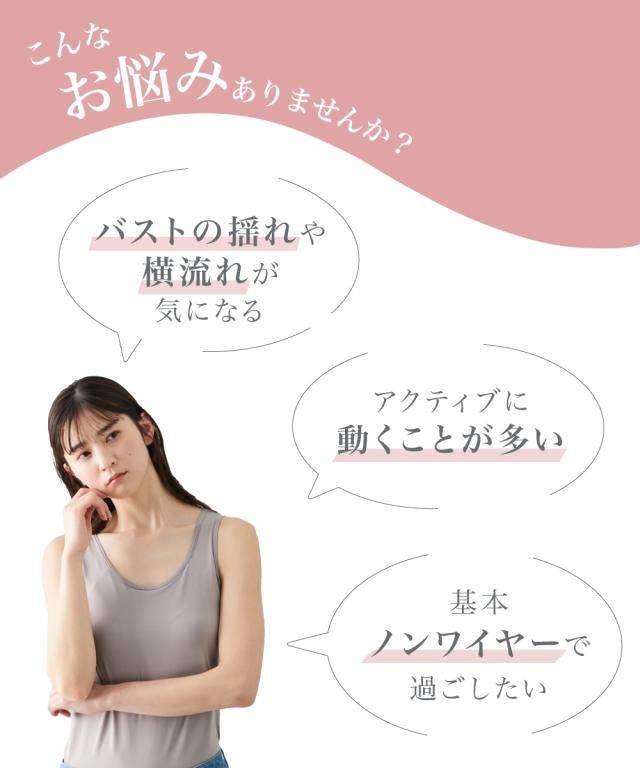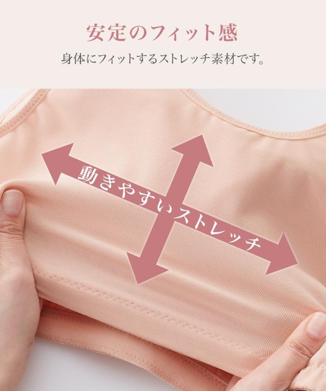 人気の「揺れおさえ」に綿混タイプ登場! こだわりポイント ・ノンワイヤーでもバストをホールド。揺れを軽減する人気の「揺れおさえ」シリーズ ・三枚はぎのカップ&バストを囲んだサイドパネルがバストの横流れを防止。ワイヤーやサイドボーンなしでも安定 ・表生地はパワーネットでしっかりバストをホールド ・パワーネットの裏打ではみ肉を軽減。姿勢をよくし、背中をすっきり整えます ・肌側が綿混、カップ部分は綿100%なので肌ざわりがよい ・肌ざわりの良い綿混素材だからナイトブラとしてもぴったり ・無地なので制服やスポーツ時にもおすすめ