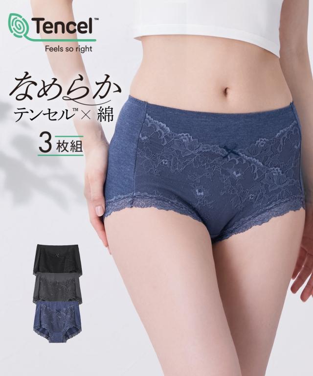 テンセルTM繊維・綿混ストレッチレーシー深ばき丈ショーツ3枚組