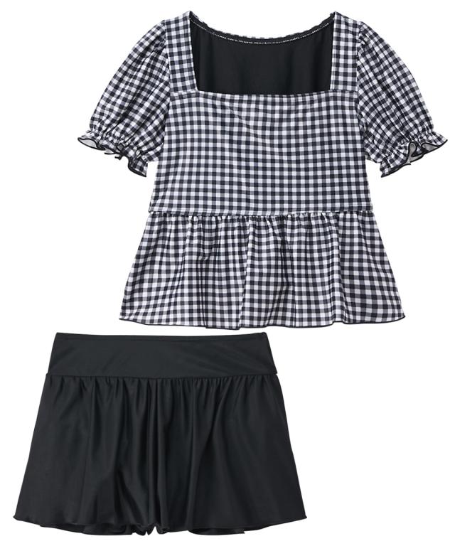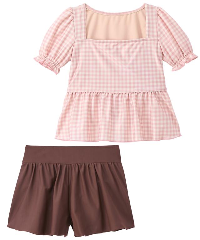 ちょっぴりレトロなデザインが今っぽい ディティールやカラーもこだわってこんなにキュートな水着が完成しました☆ ■デザイン ・スクエアネックや切り替えなど、少しレトロなディティールをプラス ・ギャザーたっぷりのキュロパンがかわいい ■素材 ・身体にフィットして動きやすいトリコット素材