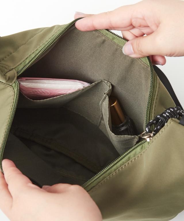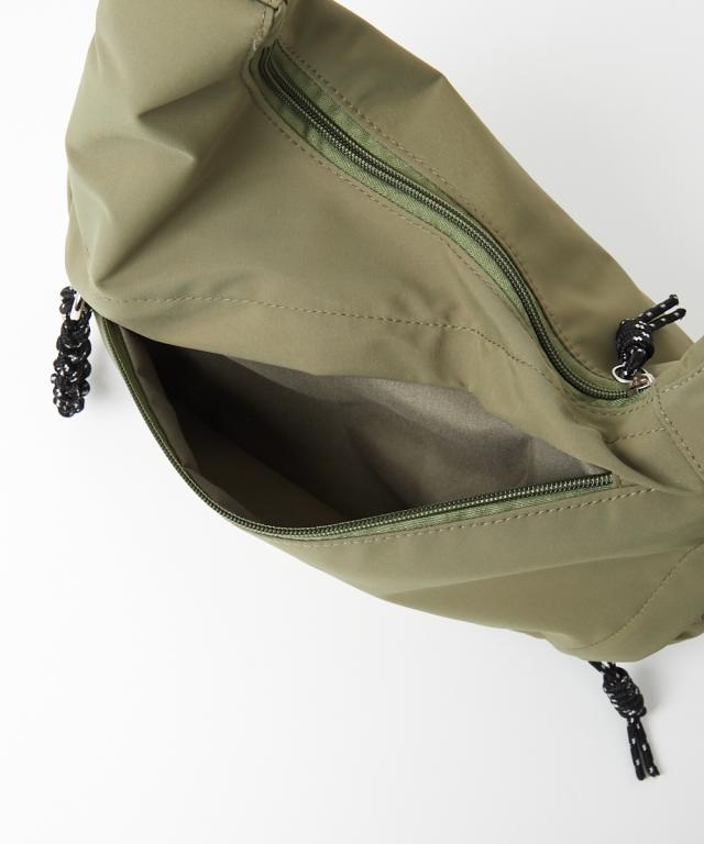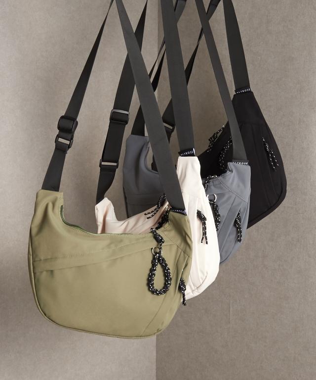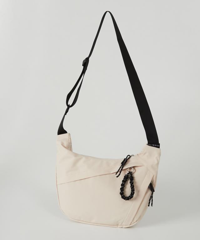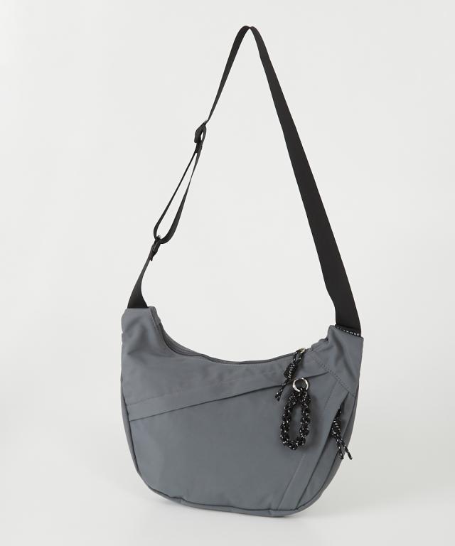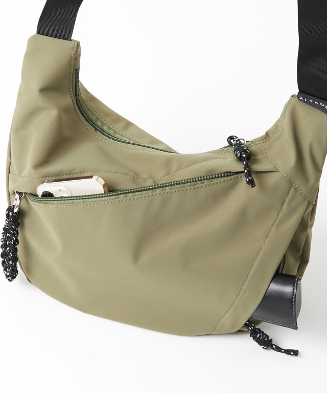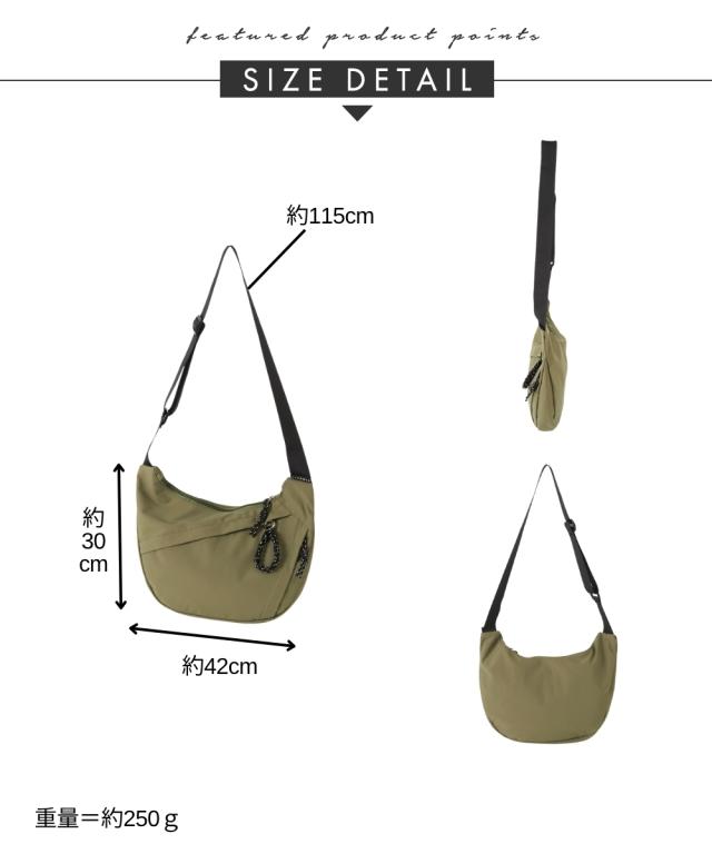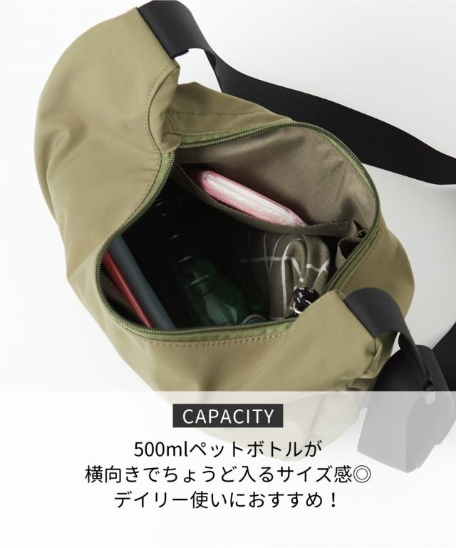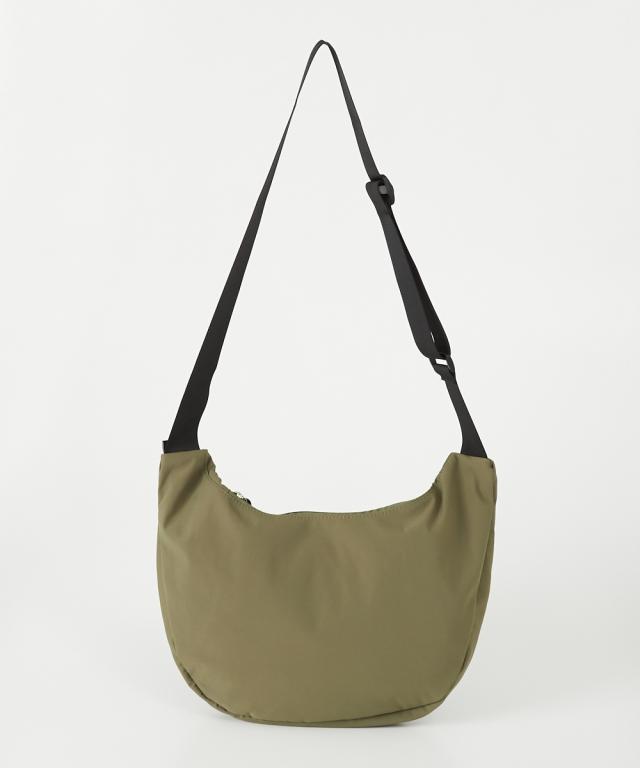 ハーフムーン型が体に沿って持ちやすい、シンプルで使えるショルダーバッグです。500mlのペットボトルが横向きでちょうど入る便利なサイズ感です。軽いのであらゆるシーンで重宝します。 ■デザイン シンプルながらファスナー引き手のコードがアクセントになったデザインです。 ■コーディネート カジュアルでアクティブなコーディネートと相性が良いのはもちろん、スカートスタイルにスニーカーやスポーツサンダルを合わせる際のつなぎアイテムとして取り入れるのもおすすめです。