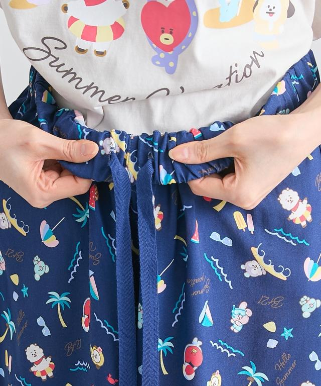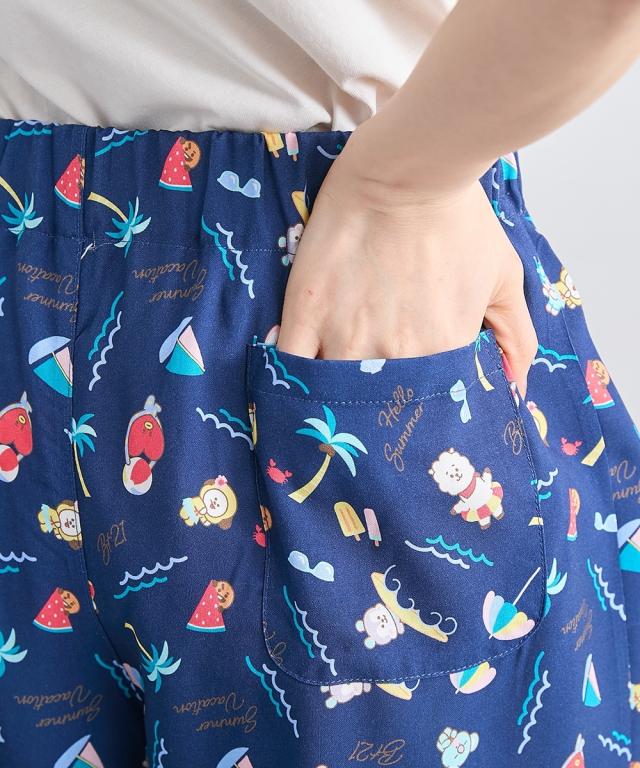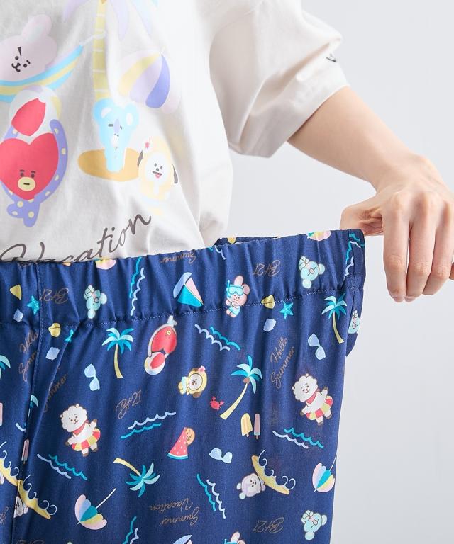 宇宙最高のスターを目指すBT21が勢ぞろいした夏の涼しいアイテムステテコが登場です!■デザイン ひざ下丈のシンプルなパンツ。ウエストは総ゴムでとってもラクラク!あると嬉しいポケットは後ろに1つ。お風呂上りはもちろん、1マイルのお出かけにもぜひ! ■素材 レーヨン素材で肌当たりはサラリと気持ちいいです。柔らかくリラックスタイムの部屋着にしてもいいですね! ■おすすめのスタイリング カジュアルにゆったりシルエットのTシャツを合わせたり、デニムのシャツ合わせでオシャレにコーデしてもいいですね!