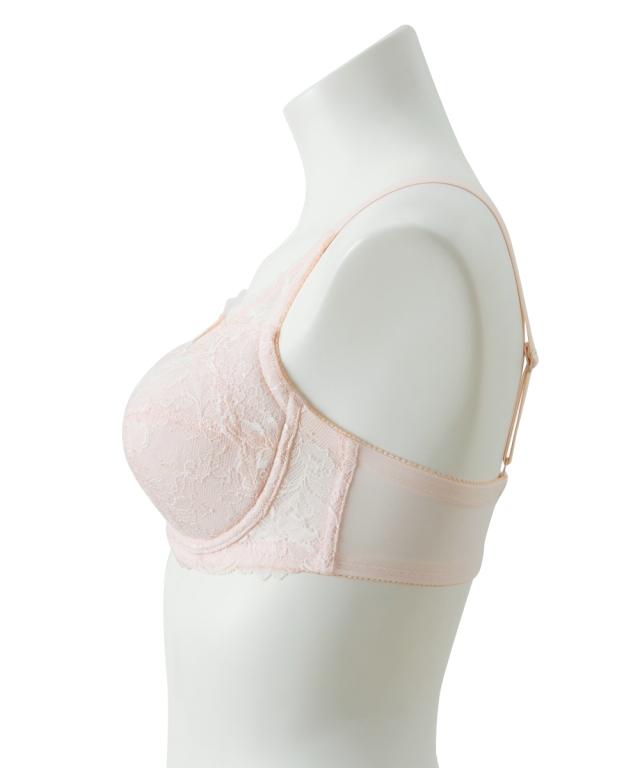 柔らかな風合いと発色の良い日本製レースのカラフルパレットシリーズ 【おすすめポイント】 ・バストをつつみこみ、きれいな丸胸に ・華やかな日本製レース 【こんな方におすすめ】 ・大きいサイズはかわいいブラジャーがない ・バストがはみ出てしまう ・脇の段差が気になる ・下着で気分を上げたい 【商品特徴・機能】 ・バストを包み込んできれいな丸胸メイク ・パカパカ浮き防止のゴムレース使い ・脇の肉流れを防止するボーン付 ・気になる「ぷにゅ肉」をカップ上辺のゴムレース使いで包みこみながら引き上げる ・カップ裏は肌ざわりのよい綿混素材 【デザイン】 ・可憐なレースで気分が上がる ・美しい発色とやわらかな風合いの日本製レースをふんだんに使用 【開発者コメント】 2004年からスタートしたカラフルパレットシリーズ。 当時は大きなサイズが市場に少なく、大きなサイズの方にもブラジャー選びを楽しんで欲しい!との思いで企画しました。 豪華な刺しゅうやカラーにこだわり、気分が明るくなる素敵なデザインに仕上がりました。 サイズも当初はD〜Gカップ、アンダーバスト85〜100cmまでの展開でしたが「もっとサイズを選びたい」の声にお応えしてB〜Hカップ、アンダーバスト85〜
