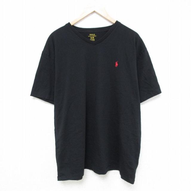 【商品名】 XL★古着 トミーヒルフィガー トミージーンズ 半袖 ブランド Tシャツ メンズ ワンポイントロゴ 大きいサイズ コットン Vネック 黒