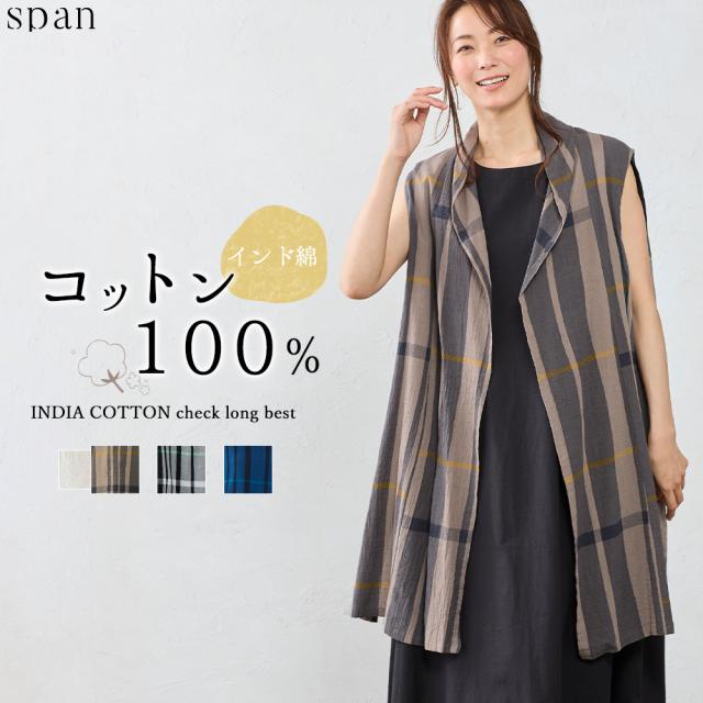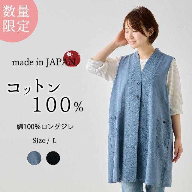 【限定品】綿100% コットン ロングジレ ベスト トップス レディース 女性 春 夏 Vネック カジュアル さらさら 薄手 女性カジュアル ブルー ブラック 青 黒