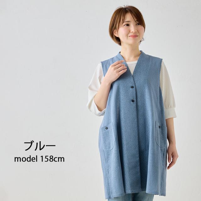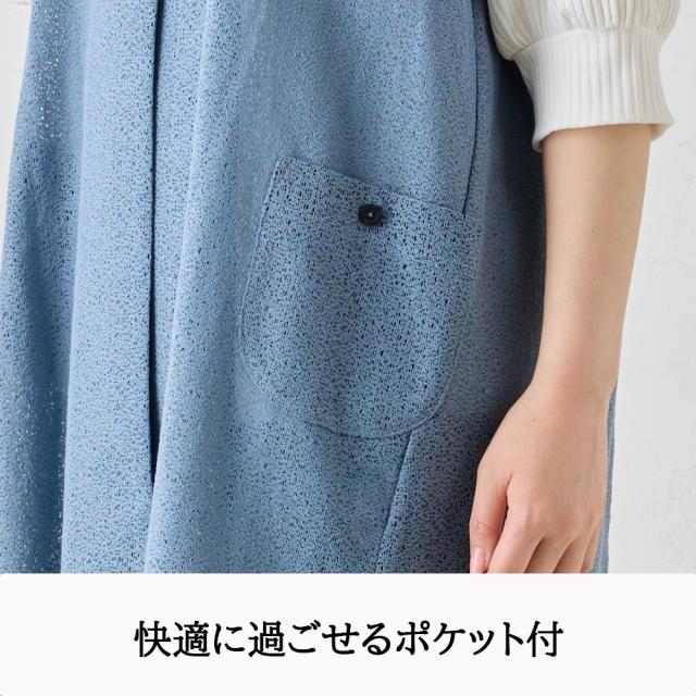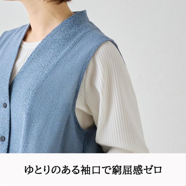 広めのアームホールで重ね着しやすく、便利なポケット付きで、日常使いにも頼れる一枚です。