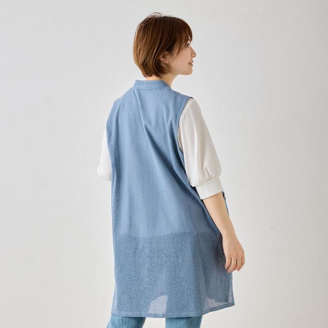 | 商品詳細 | 清潔感のあるシルエットに、使いやすさも備えたロングジレ。広めのアームホールで重ね着しやすく、便利なポケット付きで、日常使いにも頼れる一枚です。 |