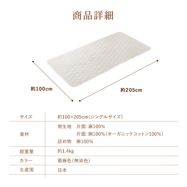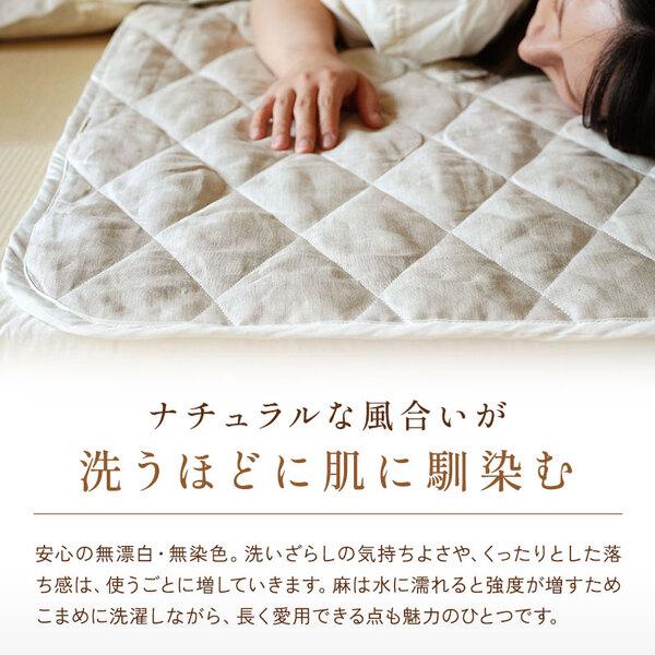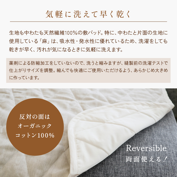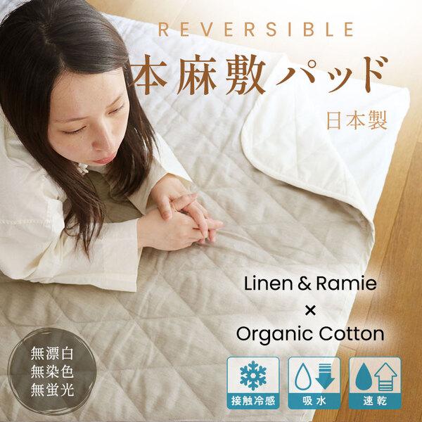 【日本製/洗える】本麻敷パッド シングル【麻×コットンのリバーシブル】リネン&ラミー オーガニックコットン 亜麻色 生成 無染色 ベッドパッド 敷きパッド 接触冷感 リネン