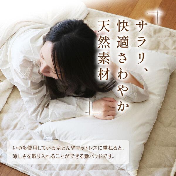 表面はリネン&ラミーの麻100%で夏涼しく、裏面はオーガニックコットン100%で一年中使える敷パッド♪