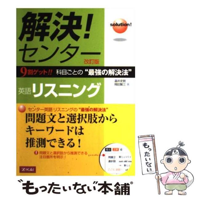 商品名:【中古】 英語リスニング 9割ゲット!!科目ごとの”最強の解決法” Solution! 改訂版 (解決!センター) / 温井史朗 岡田賢三 / Z会 [単行本(ソフトカバー)]【メール便送料無料】