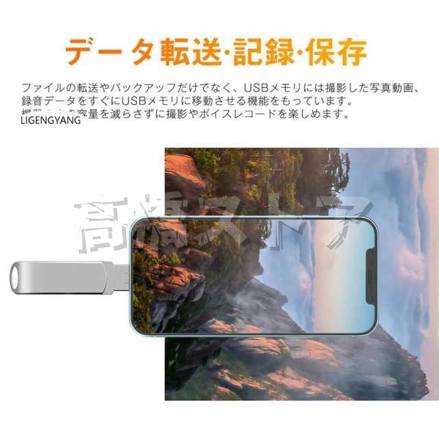 ●一台4役:Lightningコネクタ、microUSBコネクタ、type-cコネクタ、Androidコネクタを搭載したUSBメモリです。各機種の間に写真やビデオなどのファイルを自由に共有できます。 ●【容量不足解消】iPhone/Android携帯容量不足の救世主!足りない容量はこのブラッシュドライブで解決! ●コンパクトで持ち運びに便利で、iPhone/スマートフォンと一緒にポケットにも入れることができます。 容量:64GB、128GB 製品重量:約30g 製品サイズ:約60x15x9mm 材質:亜鉛合金 カラ:シルバー インターフェイス:Lightning(iPhone、iPad)、Micro USB、type-c、Android サポート機器:PC パソコン、iPhone/iPadシリーズ、Androidシリーズ、type-cシリーズ 対応機種:iPhone IOS8.0以上、iPad、windows、OTG機能持ちのAndroidシリーズ、type-cシリーズ ※いかなる場合においても、データの消失、破損等については、一切保証いたしません。 |