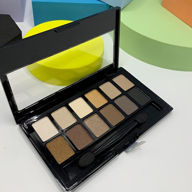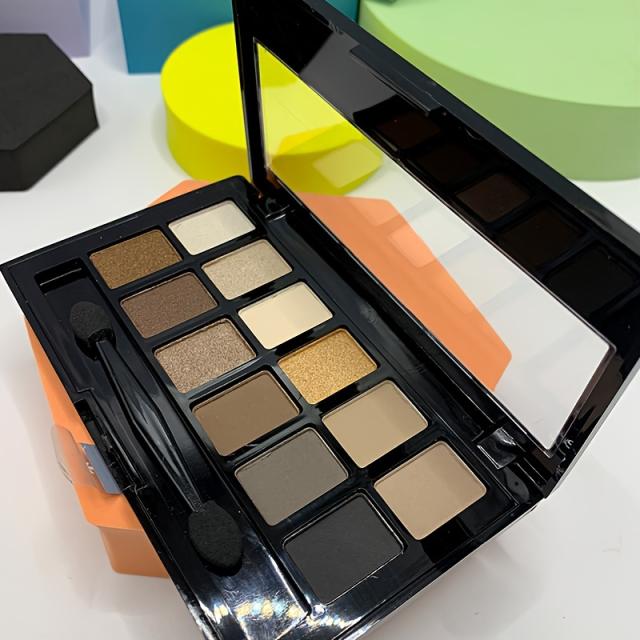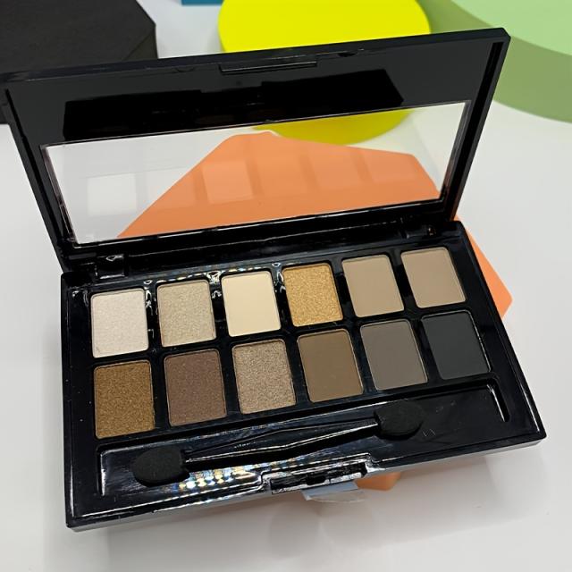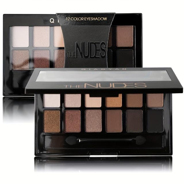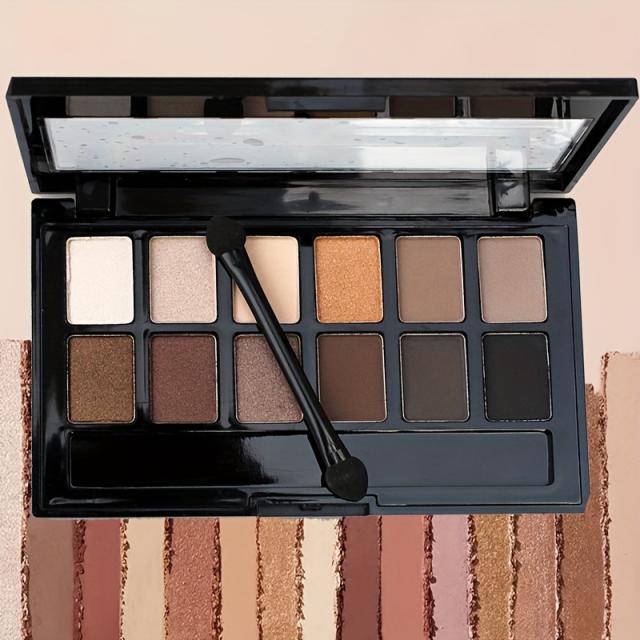 アイシャドウパレット、12色のアースカラー、グリッターマット仕上げ、ポータブルメイクアップキット、ヌード&スモーキーアイルック、マルチテクスチャアイメイク