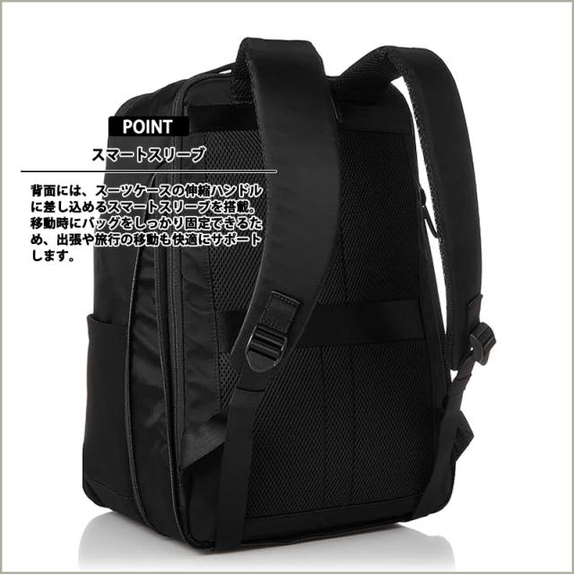 背面にはスーツケースのハンドルに固定できるスマートスリーブを装備。移動時も快適に。