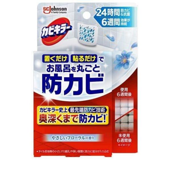 ●置くだけ・貼るだけでお風呂を丸ごと防カビ&抗菌ができる浴室用カビ防止剤です。●強力な防カビ成分:防カビ効果の高いカラシナ種子から抽出したエッセンシャルオイルを使用。●奥深くまで防カビ:狭い隙間やタイル目地の細孔の奥深くまで到達し、防カビ効果を発揮します!●防カビ成分が24時間常に空気中に補充されるため、6週間(※1)、しっかり効果が持続!シャワーや水滴などで防カビ成分が洗い流される心配がありません。●カートリッジを交換するだけで、取り換えも簡単!●やさしいフローラルの香り。※1 使用環境により異なります。