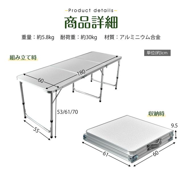 新生活 アウトドアテーブル レジャーテーブル ピクニックテーブル 折りたたみテーブル ガーデンテーブル 高さ調整 収納 軽量 コンパクト 机 ピクニック キャンプテーブル バーベキュー 庭 ベランダ レジャー アルミ od657