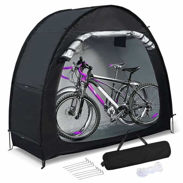 【優れたUVカット&高耐水加工】自転車置き場屋外高品質の420 Dオックスフォード布とコーティング防水裏面を用いて作られた耐水圧は4000 mmで、すべての継ぎ目はダブルステッチで作られており、縫い目には防水プレス技術がアップグレードされており、悪天候下でも強力なサポートを提供するため、他の自転車テントに比べて防水性が大幅に向上し、雨の日の屋外使用時にも水が溜まらない。