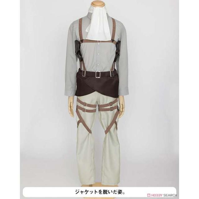 ■素材:■ジャケット…綿100%■固定ベルト付きパンツ…パンツ:ポリエステル100%、合皮:合成皮革ポリウレタン100%、ゴム: ポリエステル・ポリウレタン■腰布、ブーツカバー、リヴァイのスカーフ…ポリエステル100%■リヴァイのシャツ…ポリエステル80%、綿20%