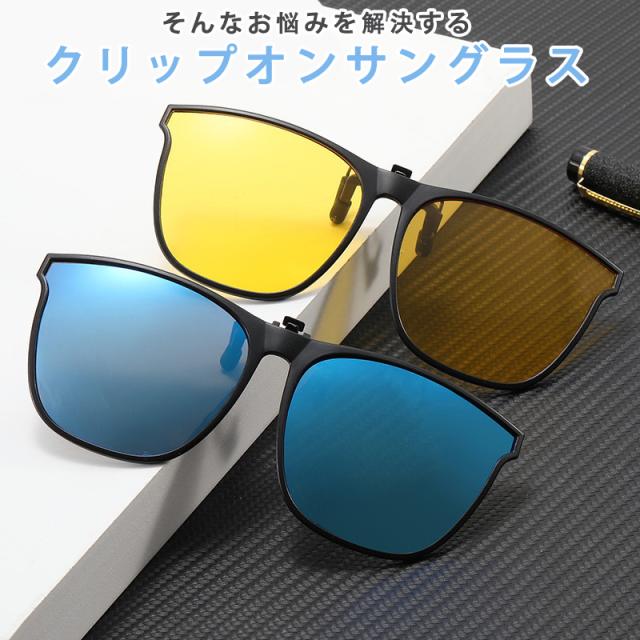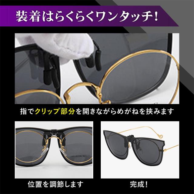 クリップオン サングラス 偏光 調光 跳ね上げ オーバーサングラス フリップアップ 脱着 取付 メガネ用 メガネの上から 挟む クリップオンサングラス