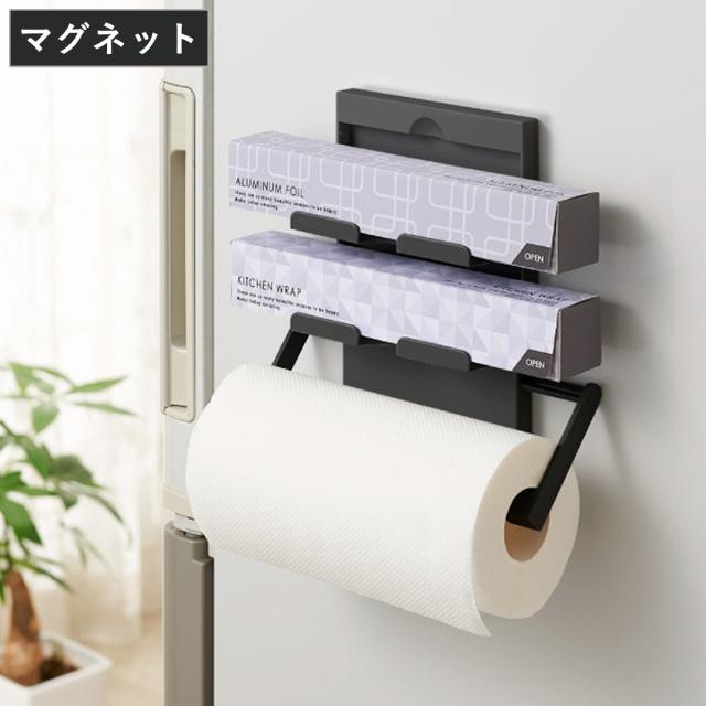 キッチンペーパーホルダー マグネット ブラックシリーズ ( ペーパーホルダー 収納ラック キッチンペーパー マグネット式 磁石 キッチン収納 冷蔵庫横 キッチン収納用品 収納雑貨 収納小物 冷蔵庫サイド 黒 )