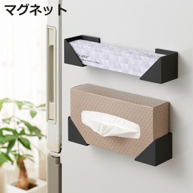 ラップホルダー ティッシュホルダー マグネット ブラックシリーズ ( 収納ラック キッチン収納 マグネット式 冷蔵庫横 磁石 ホルダー ラップ収納 ラップ置き ティッシュ置き キッチン収納用品 収納雑貨 収納小物 キッチン用品 黒 )