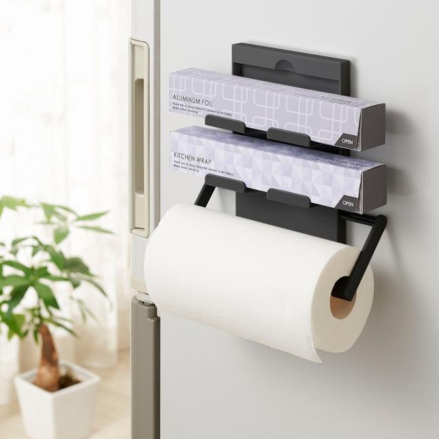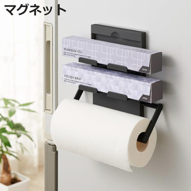 ラップホルダー ペーパーホルダー マグネット ブラックシリーズ ( マグネット式 冷蔵庫横 磁石 ラップ収納 キッチンペーパー収納 ラップ置き キッチン収納用品 収納雑貨 収納小物 キッチン用品 黒 )