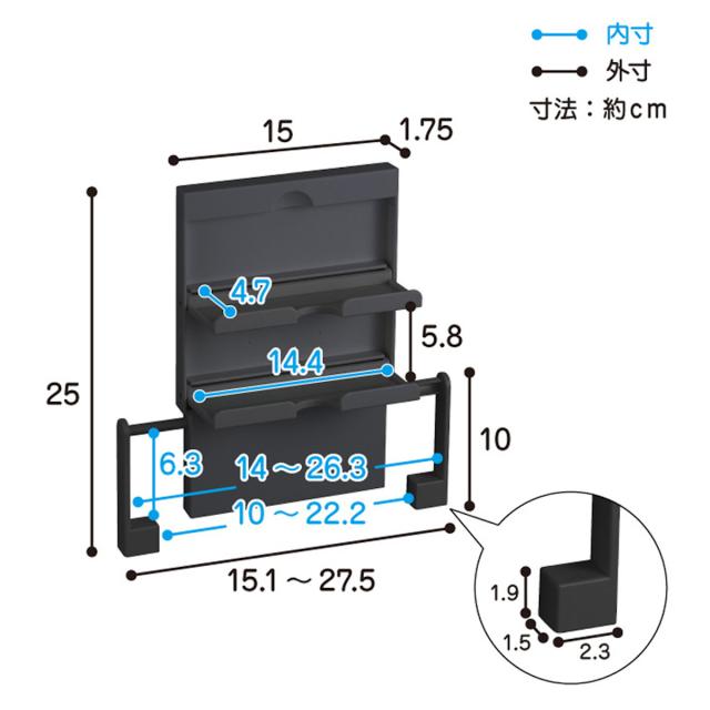 | サイズ | 約 幅15.1〜27.5×奥行1.75×高さ25(cm) |