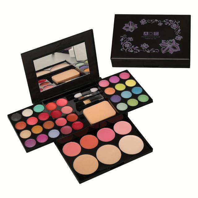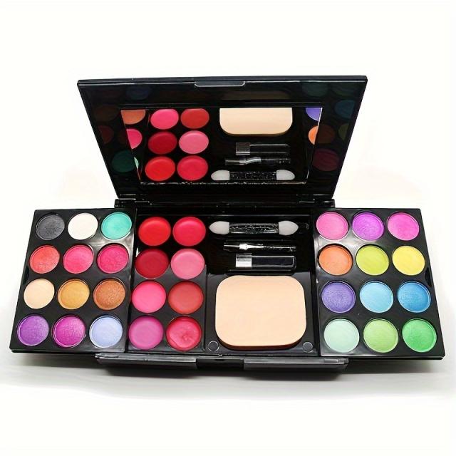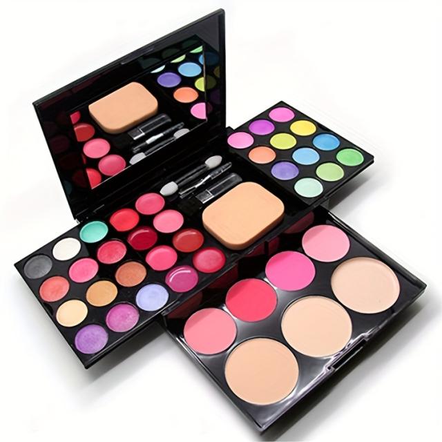39色メイクアップパレット(アイシャドウ24色+ブラッシュ4色+パウダー3種+リップティント8色)+ デュアルエンドブラシ&アイシャドウブラシ&パフセット 初心者向け多機能フルフェイスメイクトレイ ヌードメイク パフォーマンスステージメイクボックス 防水母の日ギフト