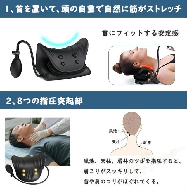 ネックリラックスピロー ストレッチ エアポンブ式 高さ調整可能 首ストレッチ 枕 ストレートネック スマホ首 ネックストレッチピロー ネックストレッチャー ネックピロー 首枕 肩 リラックス 母の日 父の日 プレゼント