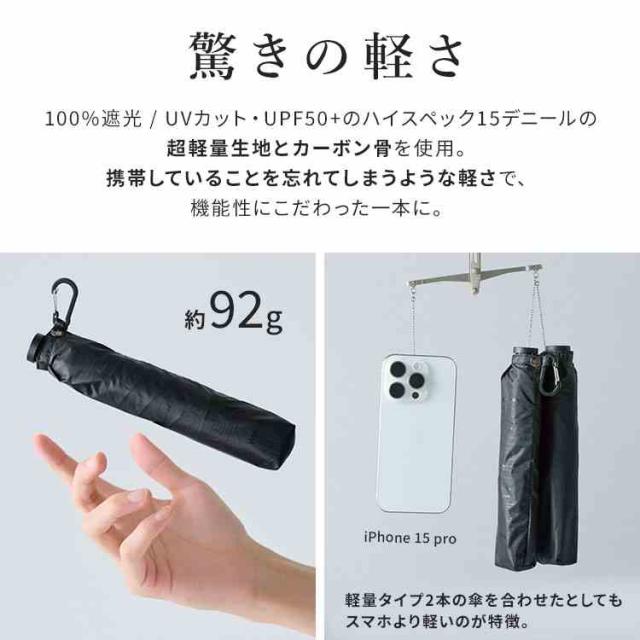 日傘 折りたたみ傘 超軽量 完全遮光 晴雨兼用 Wpc. go-koh メンズ レディース UVカット 遮光率 100% 遮熱 涼しい カラビナ コンパクト 小さい 軽い たたみやすい スリム 100g以下 黒 ブラック おしゃれ 無地 シンプル 撥水 ブランド 丈夫 50cm UPF50+ 男性 女性 ビジネス