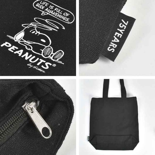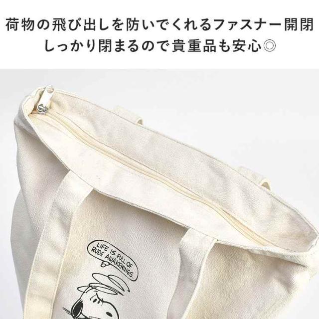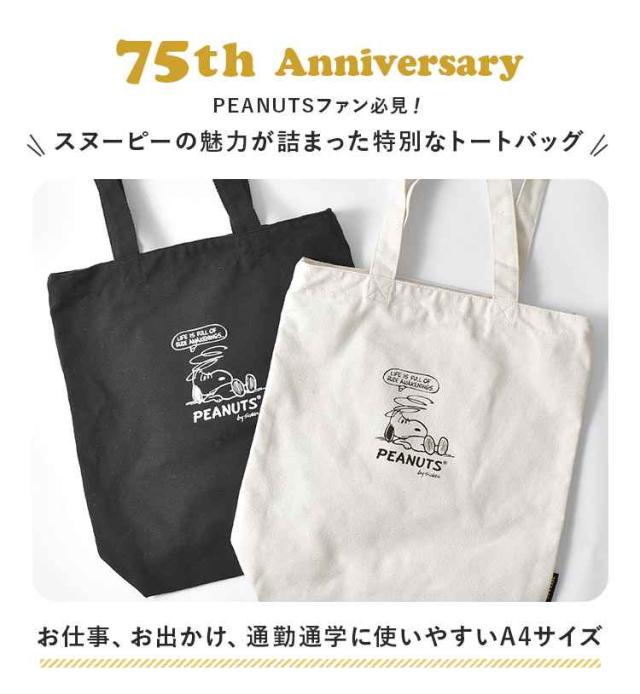 トートバッグ SNOOPY スヌーピー レディース ファスナー付き かわいい A4 大容量 トート キャラクター 75周年 限定デザイン キャンバス 軽量 縦型 肩掛け 軽い 大きめ 旅行 無地 アイボリー ブラック 黒 ピーナッツ グッズ 通勤 通学 誕生日 プレゼント 高校生 大人 中学生