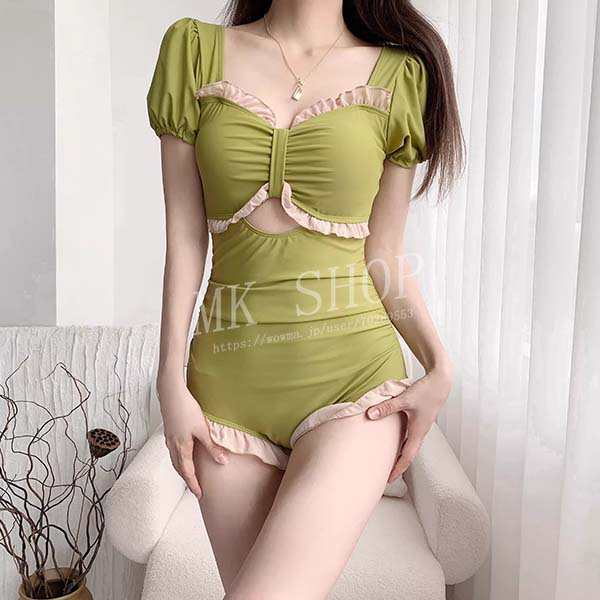 送料無料夏新作 連体水着 半袖 リボンの襟元 体型カバー水着 温泉リゾート水着 ミセス セクシー バスト 盛れ