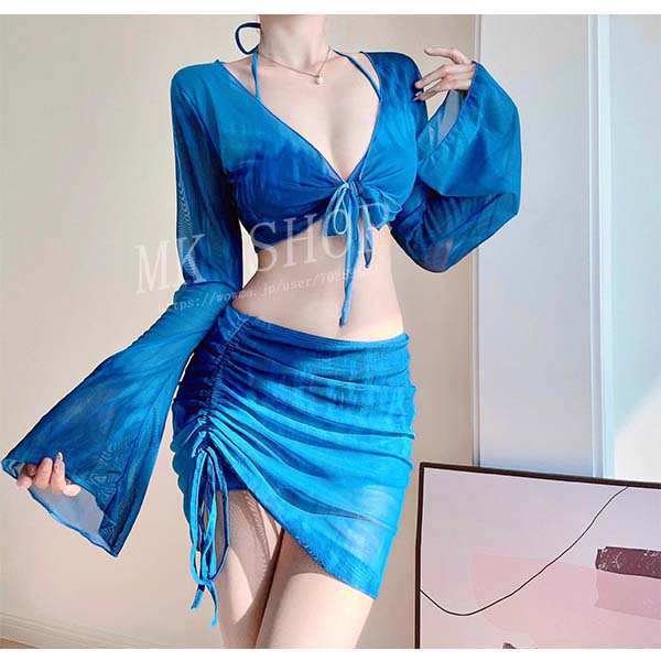 送料無料春夏新作 ビキニ 水着 羽織 4点セット セクシー かっこいい 個性的 三角ビキニ ブルー グラデーション たいだい スポー温泉リゾート