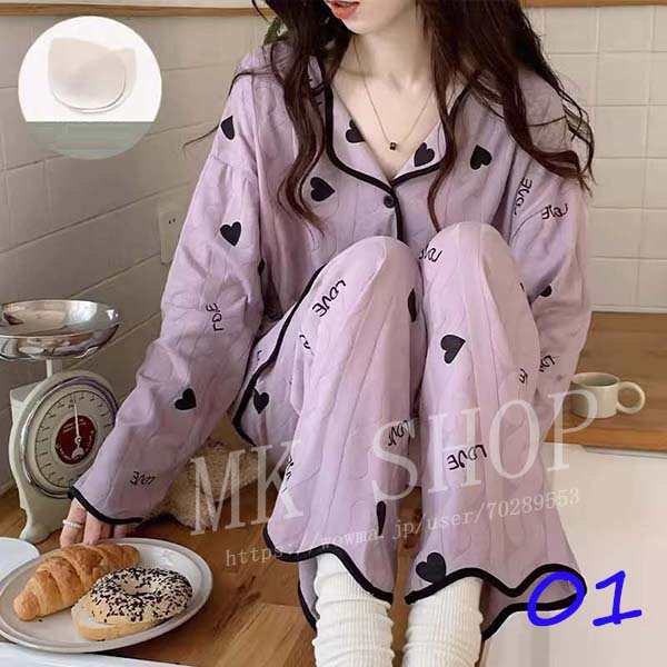 送料無料 パジャマ 上下セット レディース 長袖 セットアップ ルームウェア 部屋着 寝巻き カップ付き インナー 上着 パンツ 肌着
