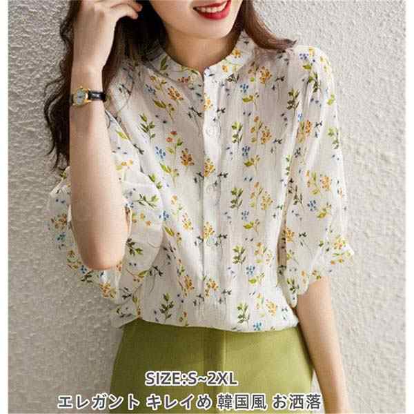 連携キーワード:ブラウス レディース 半袖ブラウス 夏 オフィスブラウス 花柄 リネン オシャレブラウス パフスリーブトップス 韓国風 大人 上品 通勤OL ゆったりシャツ 大きいサイズ 40代 30代 50代